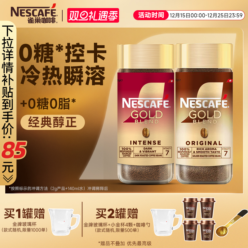 雀巢咖啡金牌瑞士进口速溶纯黑咖啡美式冻干冷萃咖啡官方旗舰店