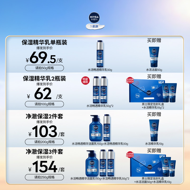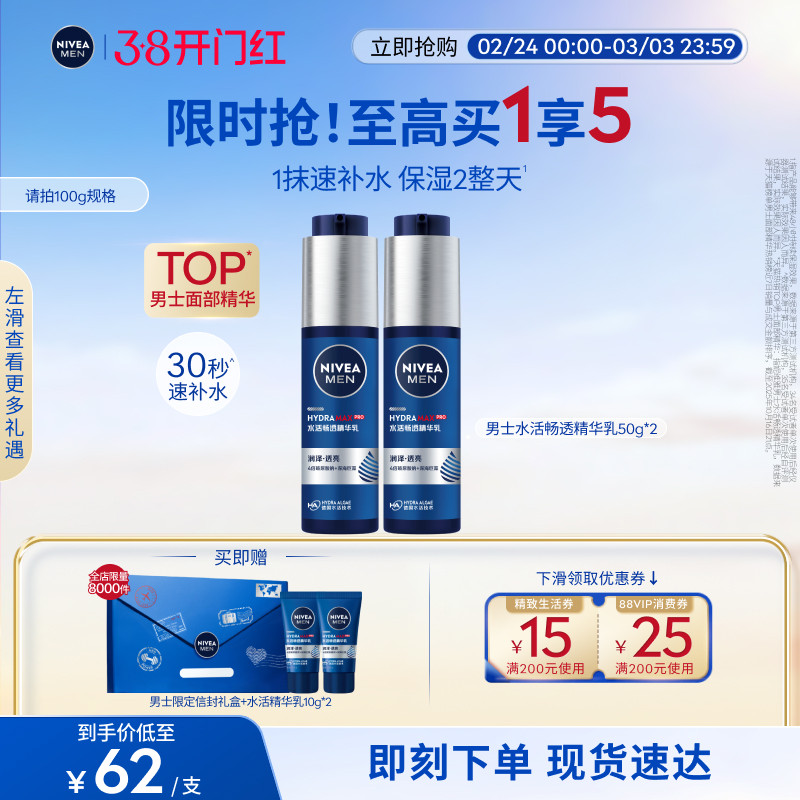 妮维雅男士补水小蓝管精华乳礼盒保湿护肤正品