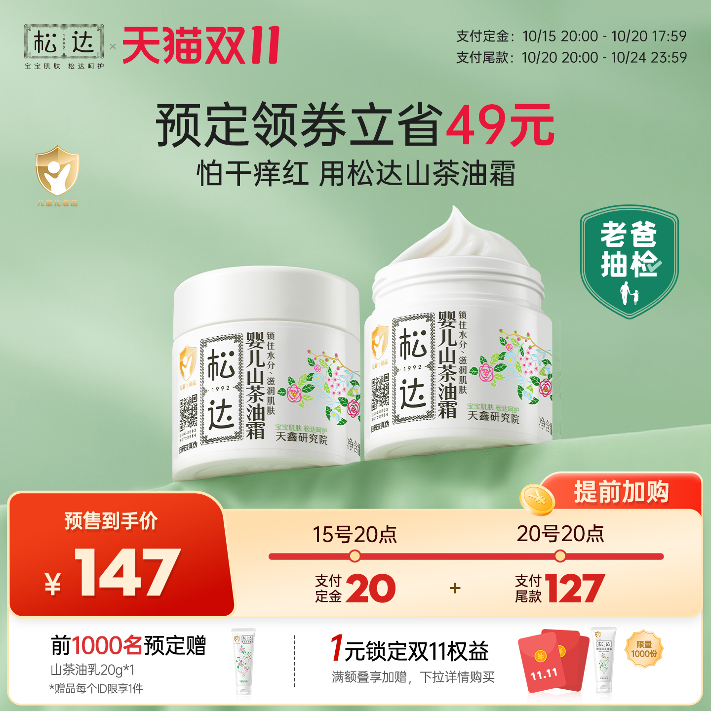 【提前加购】松达山茶油霜2瓶儿童面霜新生儿宝宝润肤霜婴儿秋冬