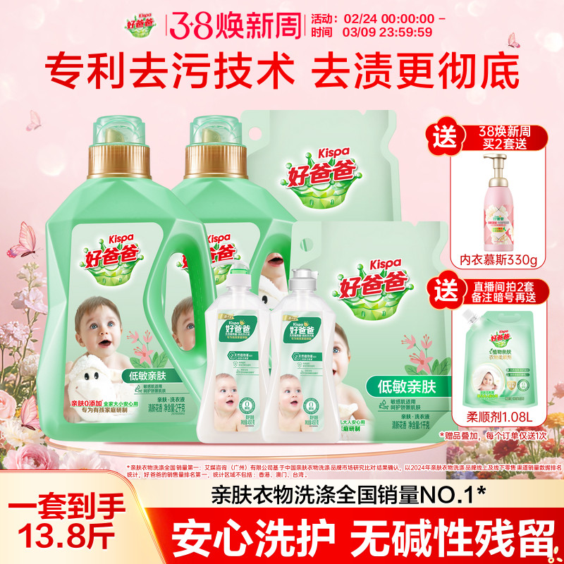 好爸爸洗衣液婴儿亲肤儿童大人通用家用实惠装官方正品整箱13.8斤