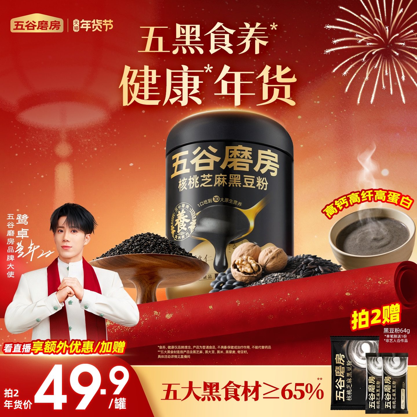 【鹭卓同款】五谷磨房无糖黑芝麻糊五黑粉高钙核桃芝麻黑豆粉早餐