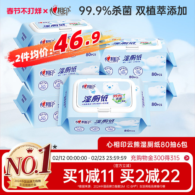 【春节发货】心相印湿厕纸湿巾纸家庭湿厕巾私处杀菌清洁湿纸80抽