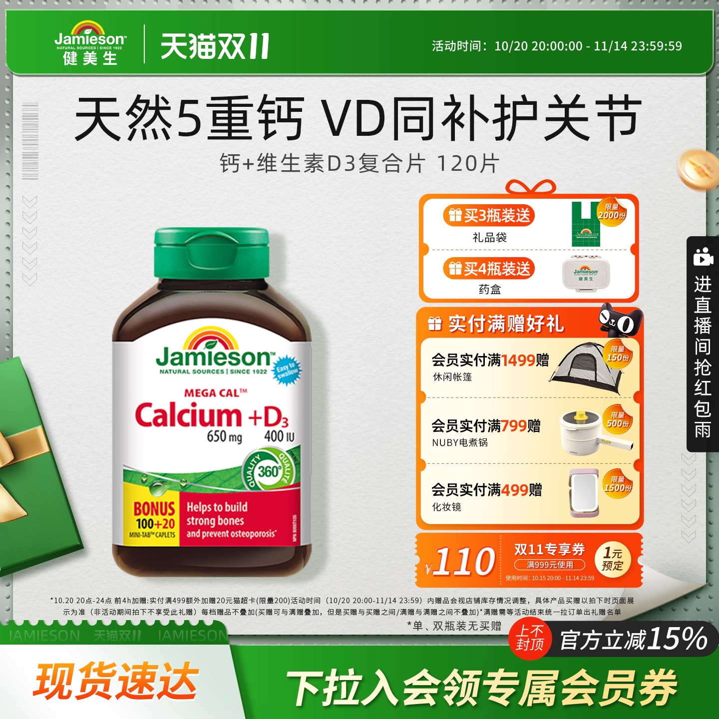 Jamieson健美生钙+维生素d3片柠檬酸钙中老年钙镁片全家成人女性