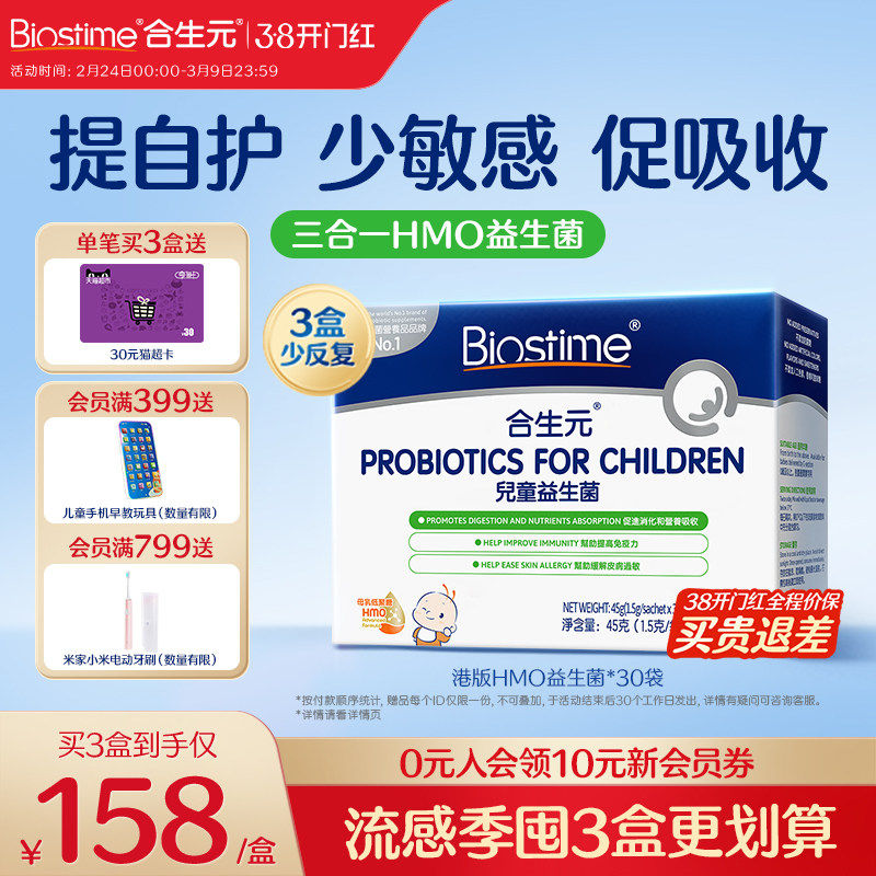 【官方】合生元HMO三合一益生菌调理肠胃免疫力过敏宝宝婴幼儿童