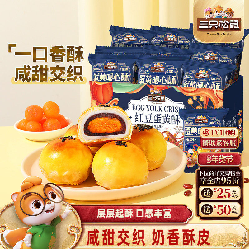 三只松鼠_蛋黄酥营养早餐特产小吃零食囤货年货中式糕点心送礼盒