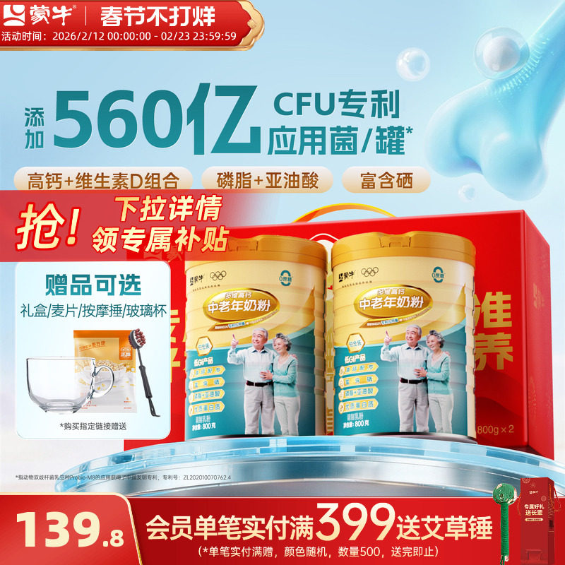蒙牛铂金装中老年奶粉800g*2老年人高钙营养牛奶粉送礼官方旗舰店