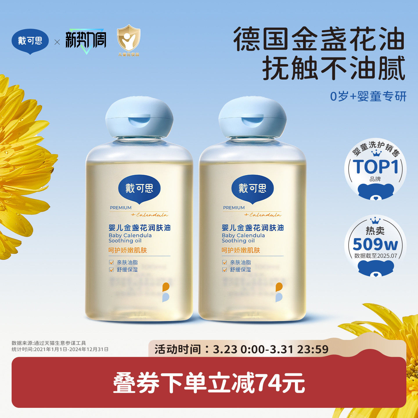 适用商品:戴可思婴儿按摩油金盏花抚触油新生儿润肤油宝宝专用婴儿油2瓶;