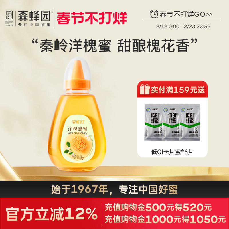 森蜂园槐花蜂蜜 秦岭森林洋槐花蜜 家用蜂蜜冲饮大瓶挤压瓶1000g