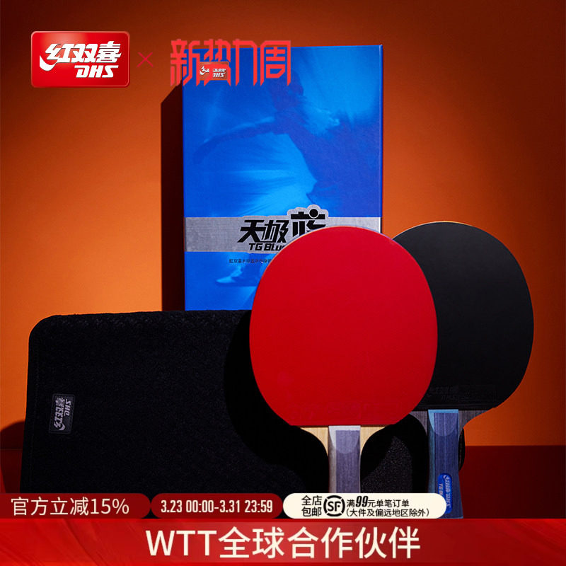 红双喜官方旗舰店 乒乓球拍单拍天极蓝礼盒省队专业蓝海绵成品拍
