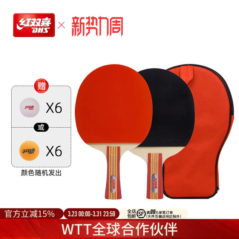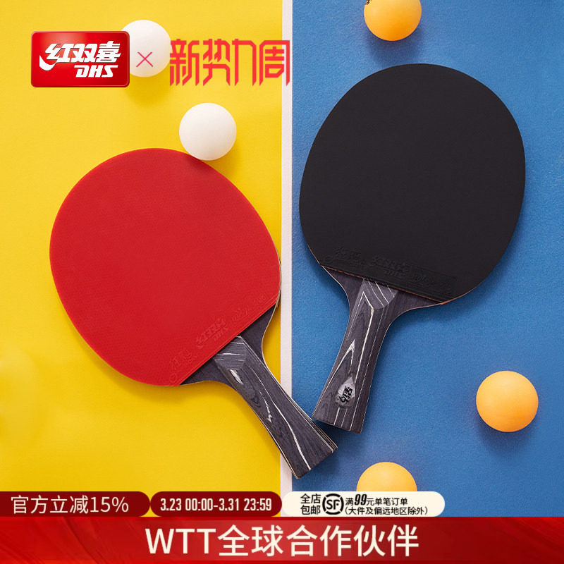红双喜官方旗舰店 乒乓球拍星级单只成品拍1-9星成人儿童训练球拍