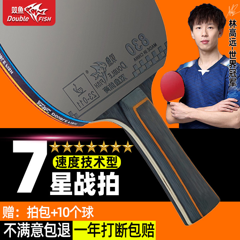 正品双鱼七星级乒乓球拍初学者高弹耐打学生训练比赛专业级成品拍