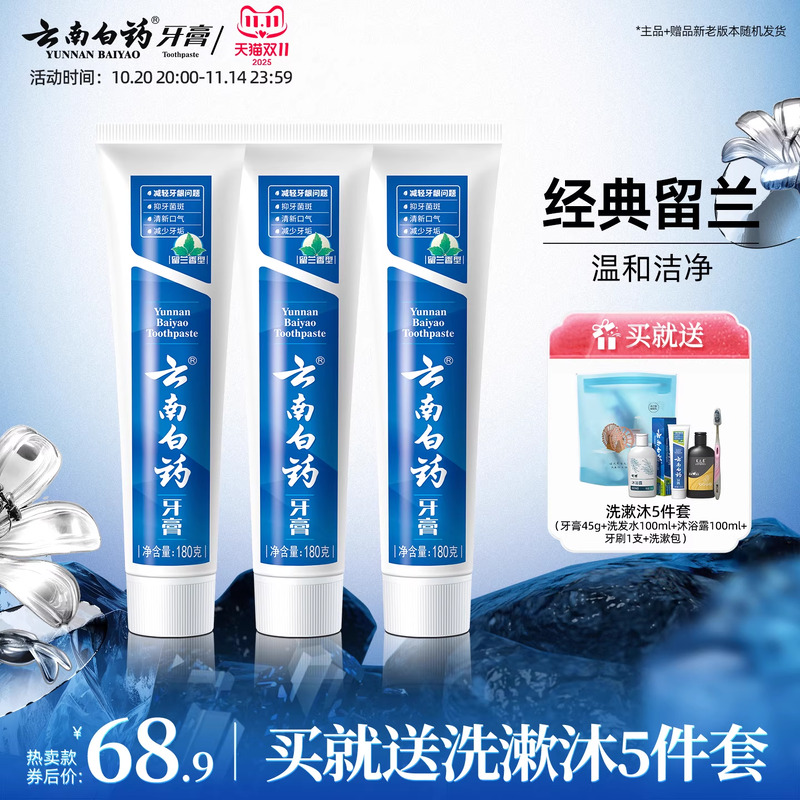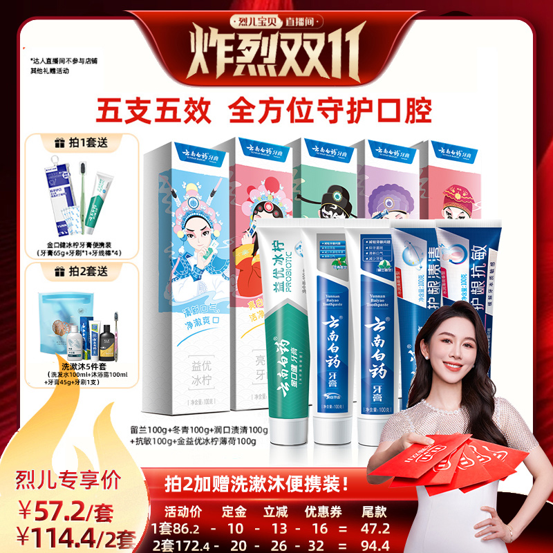 【李佳琦直播间美妆节付定金】拍2享加赠 云南白药牙膏小清新套盒