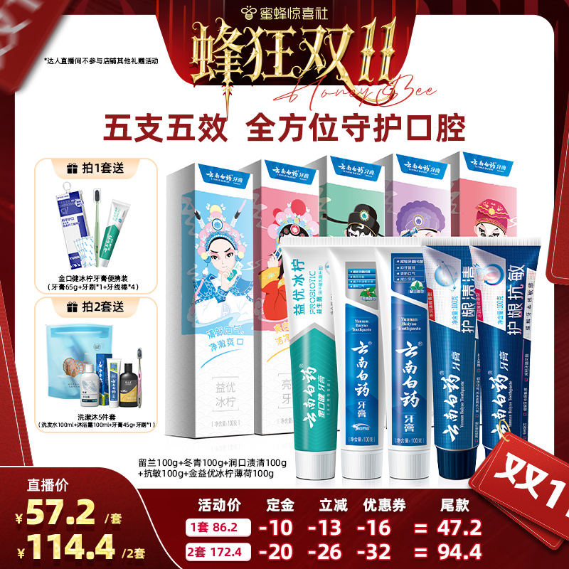 【蜂狂双11】云南白药牙膏国粹套装抗敏亮白清新护龈