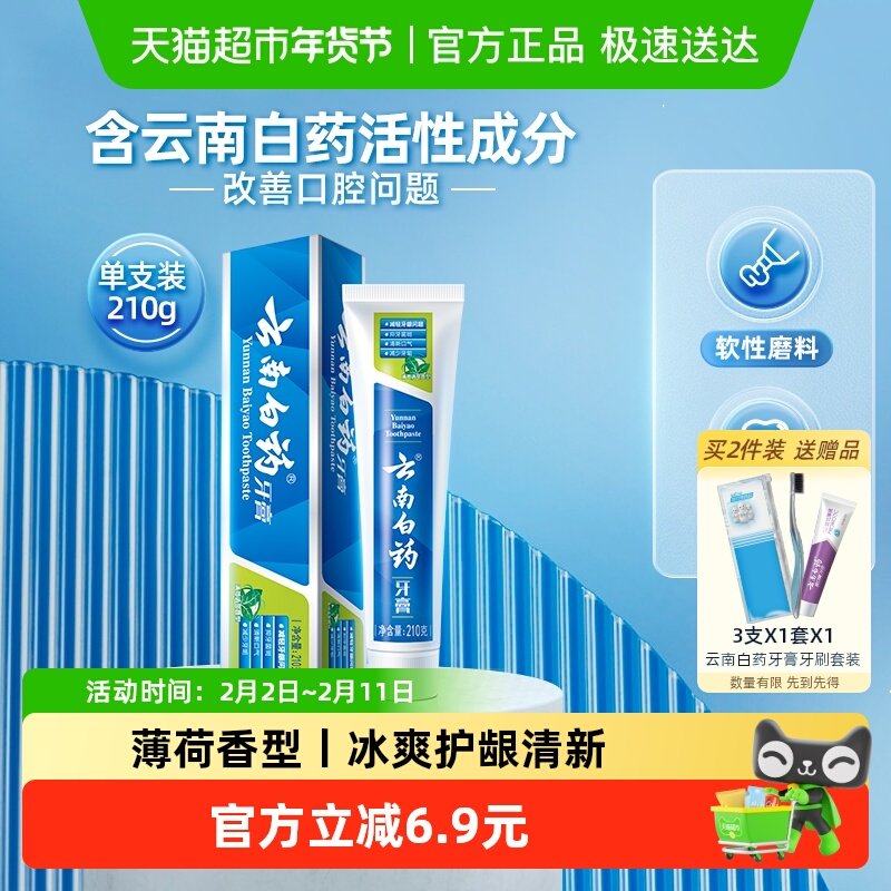云南白药牙膏薄荷清爽香型210g清新口气减轻牙垢护龈囤货装正品