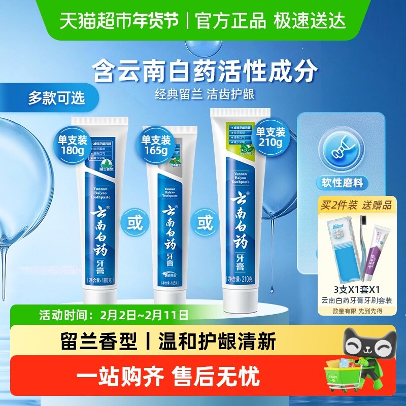 云南白药牙膏留兰香型180g清新口气减轻牙龈问题-下拉详情更优惠