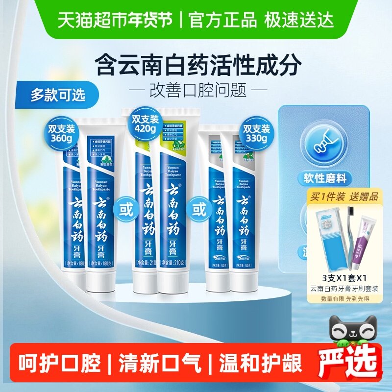 【李佳琦超级年货零食节】拍2套!云南白药牙膏护龈清新套装