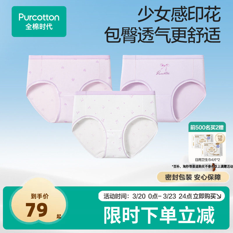 【百补】全棉时代女士内裤纯棉中腰轻薄舒适亲肤透气女生内裤