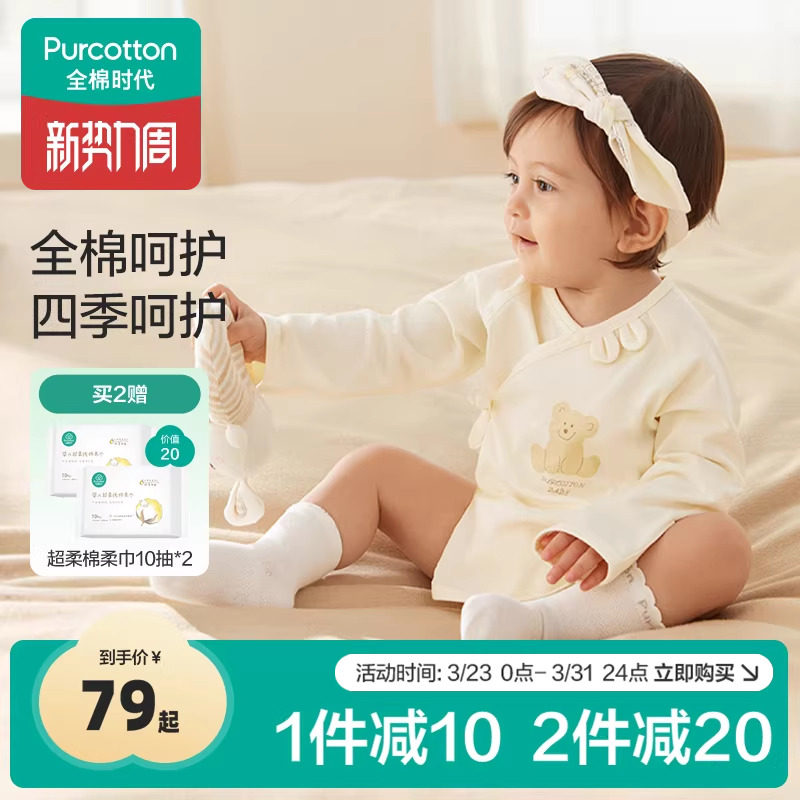 全棉时代婴儿衣服半背衣52码宝宝a类纯棉长袖上衣春夏新生和尚服