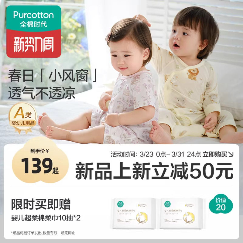 【新品小风窗】全棉时代婴儿衣服春夏宝宝连身衣和尚服爬服