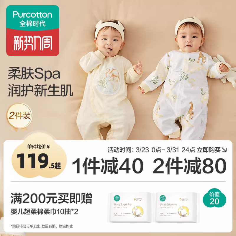 全棉时代蝴蝶衣纯棉风柔棉针织春夏新款新生婴儿连体衣宝宝衣服