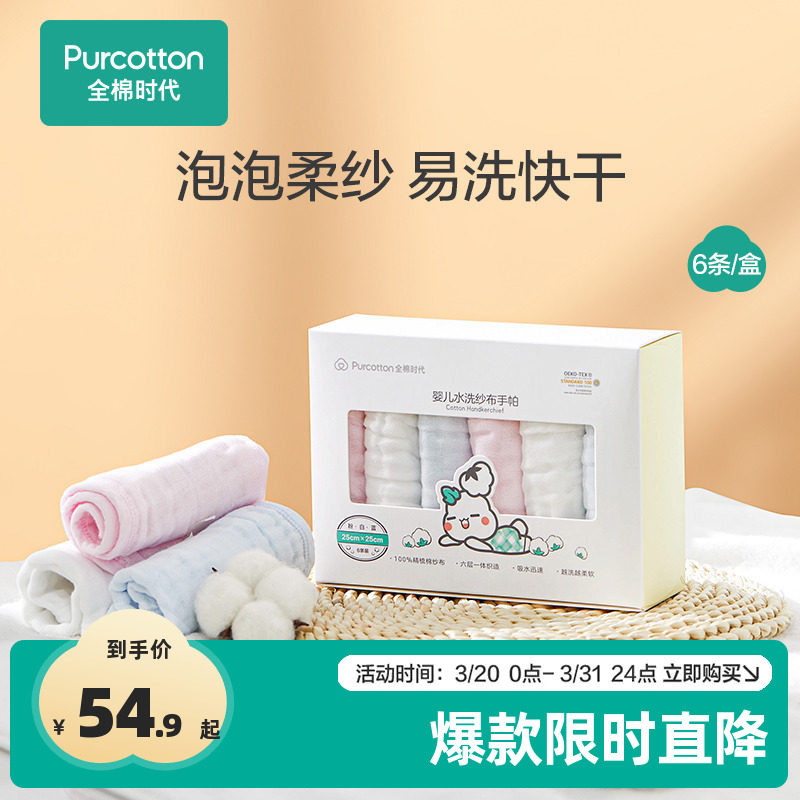 全棉时代纱布手帕纯棉口水巾新生儿围嘴婴儿洗脸宝宝小方巾6条