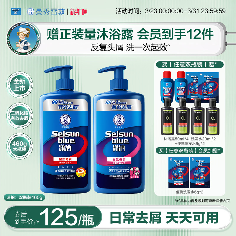 曼秀雷敦selsun潇洒去屑洗发水男女士控油蓬松止痒二硫化硒洗发露