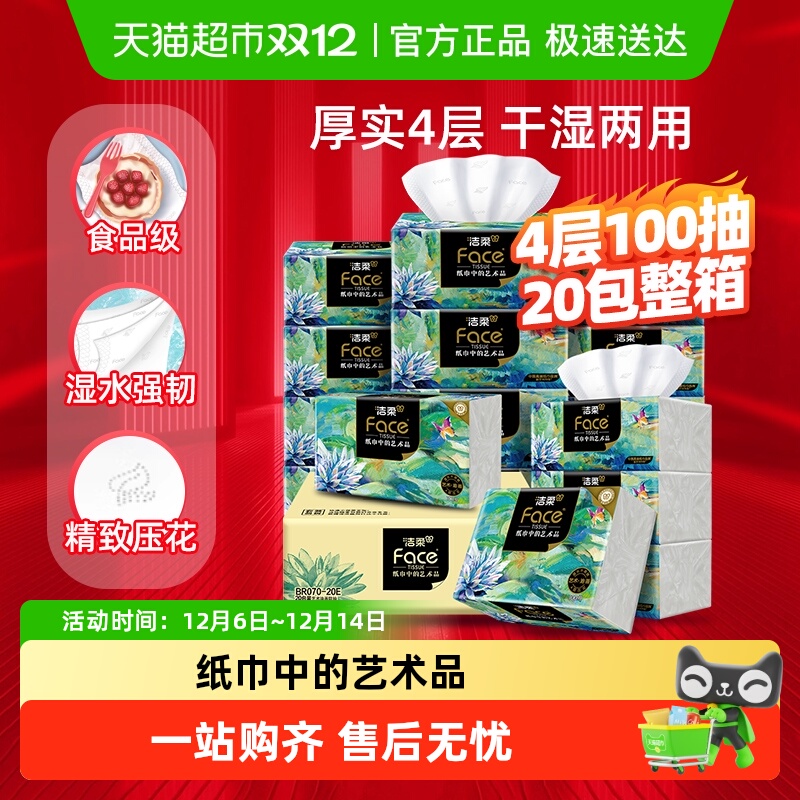 洁柔纸巾油画抽纸家用擦手纸4层加厚80抽艺术可湿水面巾纸餐巾纸