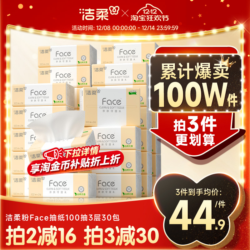 【下拉享优惠】洁柔粉Face抽纸3层可湿水多规格面巾纸实惠装整箱