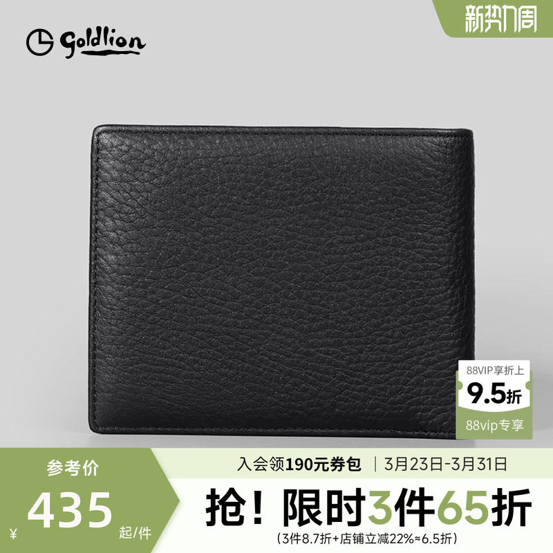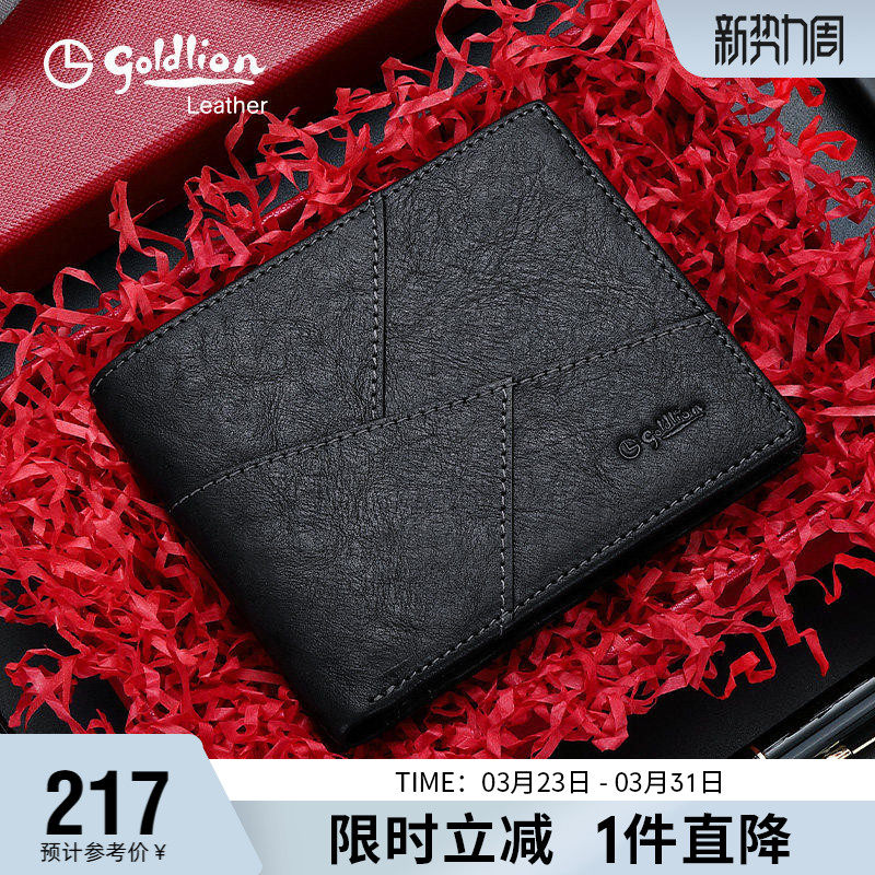 【鹿皮】金利来皮具男士新款柔软经典商务荔枝纹短款横银包钱包男