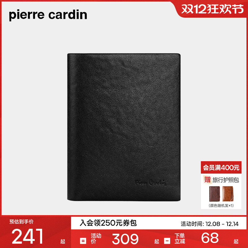 【真皮】皮尔卡丹竖版男士钱包短款卡包简约男式钱夹牛皮男生皮夹