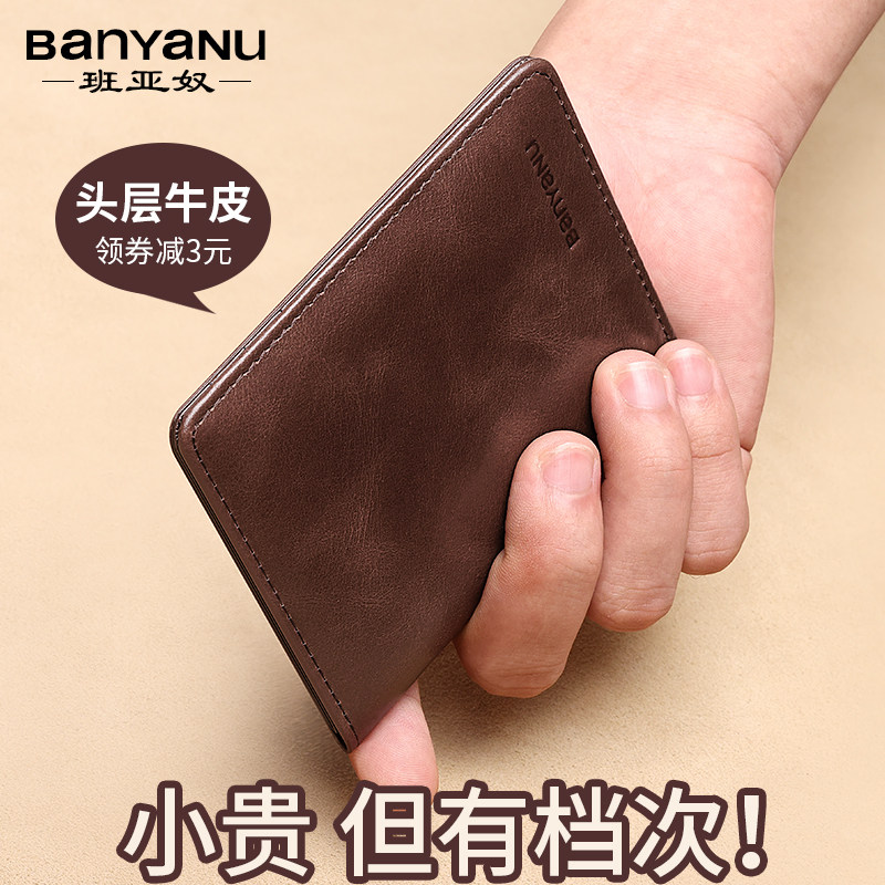 班亚奴钱包男短款真皮男士多卡位皮夹牛皮拉链零钱位独立卡包钱夹