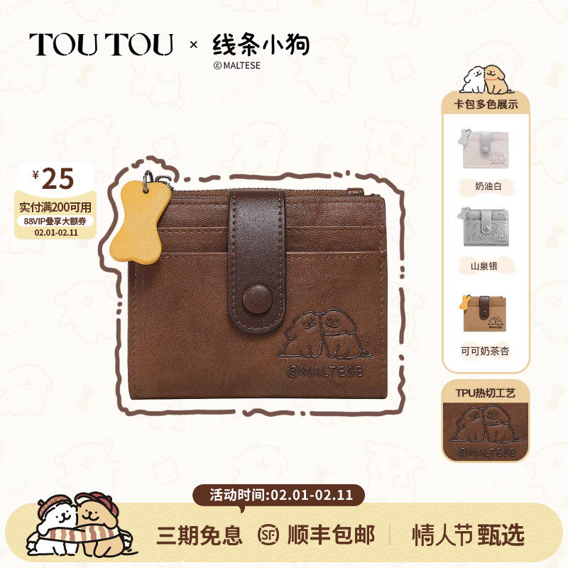 新年礼物TOUTOU线条小狗男士钱包卡包一体证件收纳零钱包护照夹女