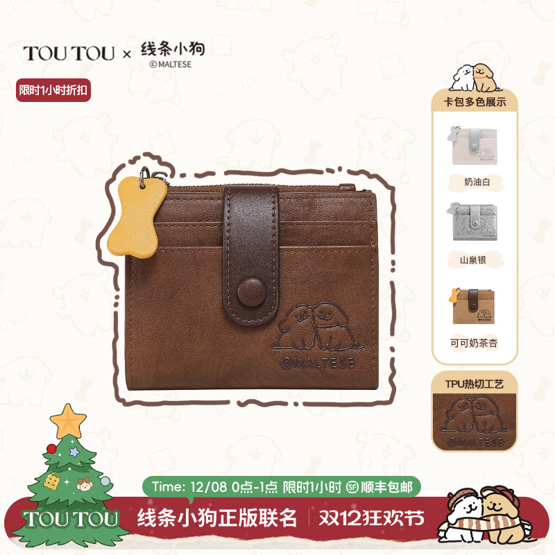 圣诞礼物TOUTOU线条小狗男士钱包卡包一体证件收纳零钱包护照夹女
