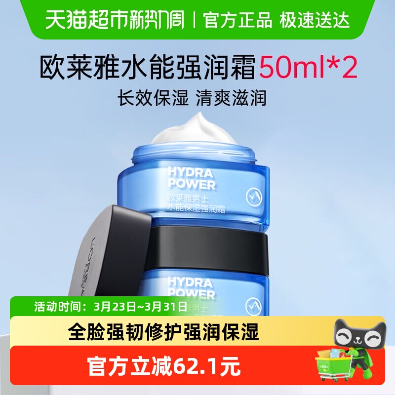欧莱雅男士面霜秋冬补水保湿滋润乳液擦脸油水能保湿强润霜50ml*2