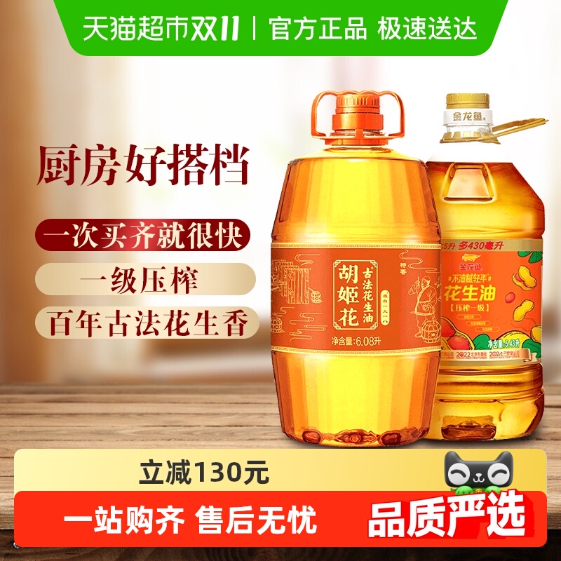 胡姬花古法花生油+金龙鱼不油腻花生油共11.51L*1组