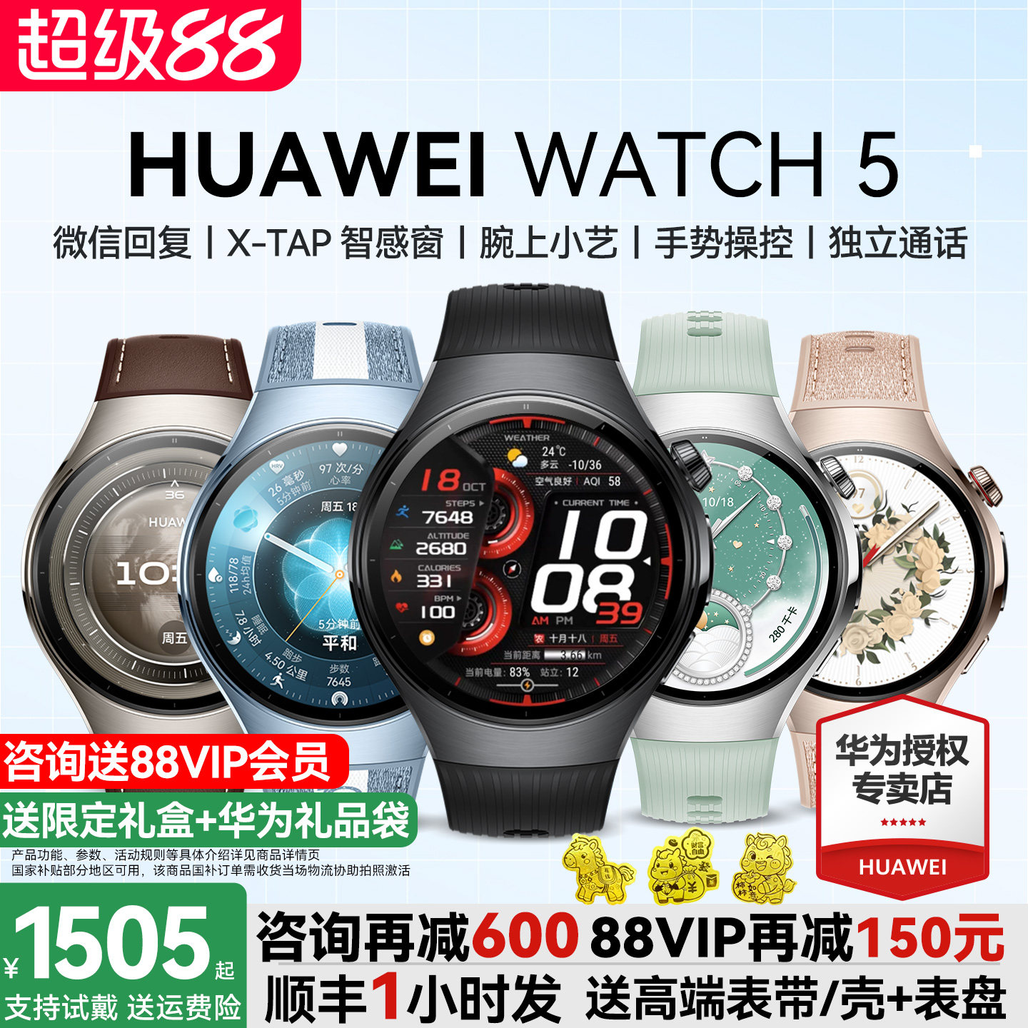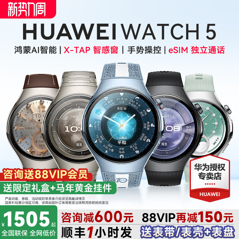 【咨询再减600!】华为手表WATCH 5智能手表2025新款智能运动手表男女血糖血压eSIM独立通话watch5系列手表d2