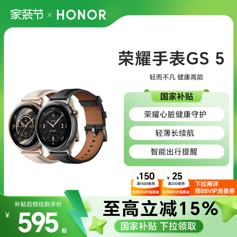 【政府补贴15%】HONOR/荣耀手表GS 5 智能手表 支持心脏健康守护 轻薄长续航 智能出行提醒等多功能运动手表