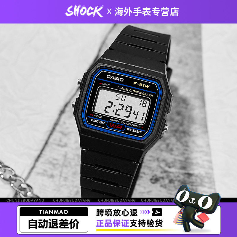 casio卡西欧手表男复古小方块大赢家同款运动手表f91w海外直邮