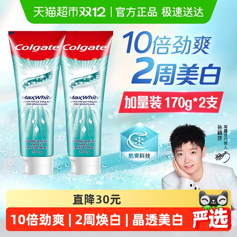 【孙颖莎推荐】高露洁劲白晶透冰爽2周美白牙膏口腔护理170g*2支