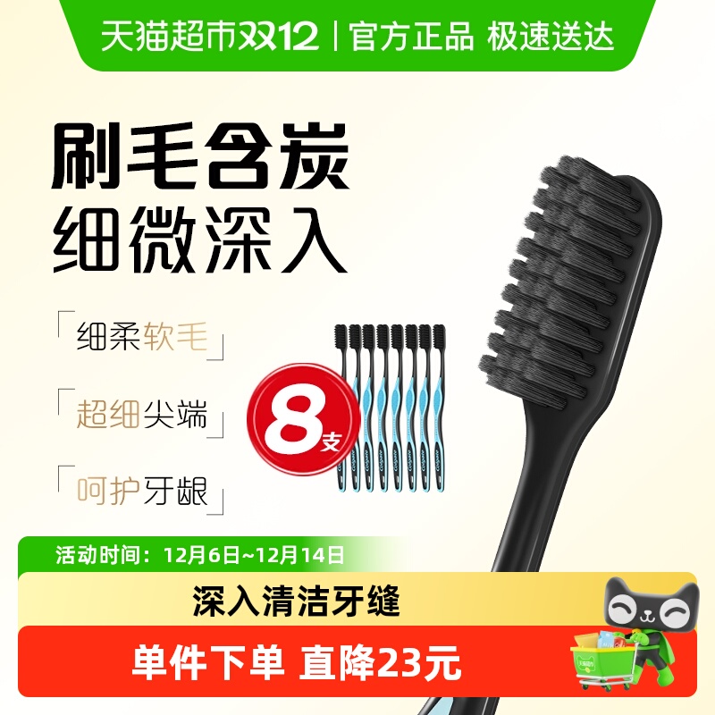 【孙颖莎推荐】高露洁细毛炭护龈软毛牙刷家庭装软毛细毛成人8支