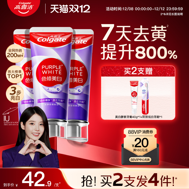 高露洁紫光色修美白牙膏成人清新去烟渍去黄去口臭正品官方旗舰店