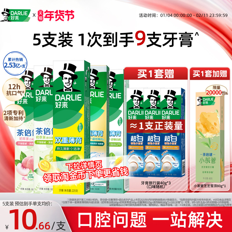 DARLIE好来原黑人牙膏初萃茶清新口气果味含氟官方正品男女